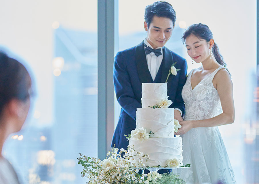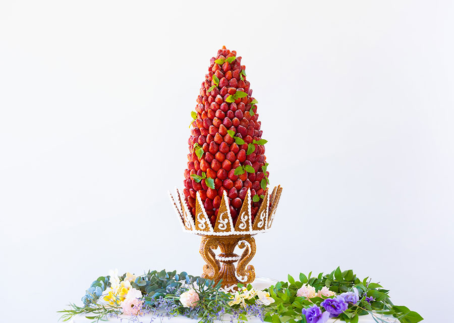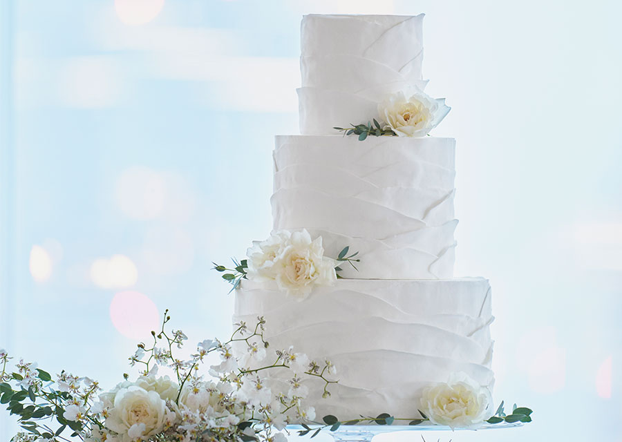 幸せの象徴としてパーティに欠かせないウエディングケーキ。お二人のご希望に沿ったオーダーも承り創られるケーキは、パティシエの高い技術と豊かな感性によって、まるでオブジェのような美しさを感じさせる逸品となります。パーティの後半にはゲストに幸せのおすそ分けとしてサーブすることもできます。